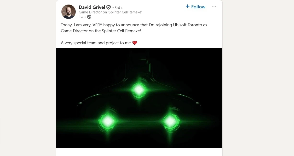 «Я очень, ОЧЕНЬ рад сообщить, что возвращаюсь в Ubisoft Toronto в качестве геймдиректора ремейка Splinter Cell!