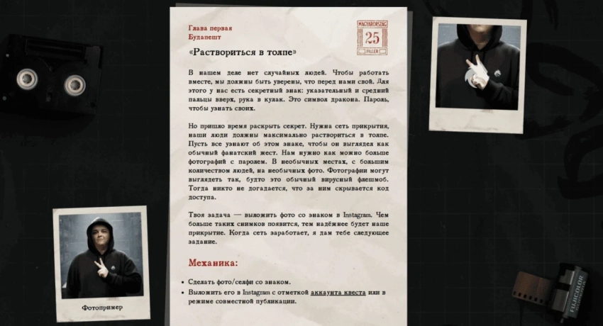 Первое задание для участников, это сделать фото в знаковом месте, на турнире, или где-то еще, при этом показав специальный жест. После необходимо выложить кадр в социальные сети с тегом квеста.