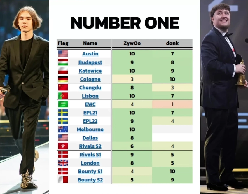 • Цифры: donk набил рейтинг выше, чем у ZywOo, на 10 турнирах 2025 года.