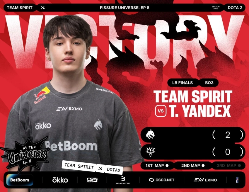 Источник: Team SpiritВ финале нижней сетки турнира FISSURE Universe: Episode 8 по Dota 2 сербская организация Team Spirit одержала уверенную победу над российским коллективом Team Yandex. Встреча завершилась со счетом 2:0, что позволило «драконам» пробиться в гранд-финал.