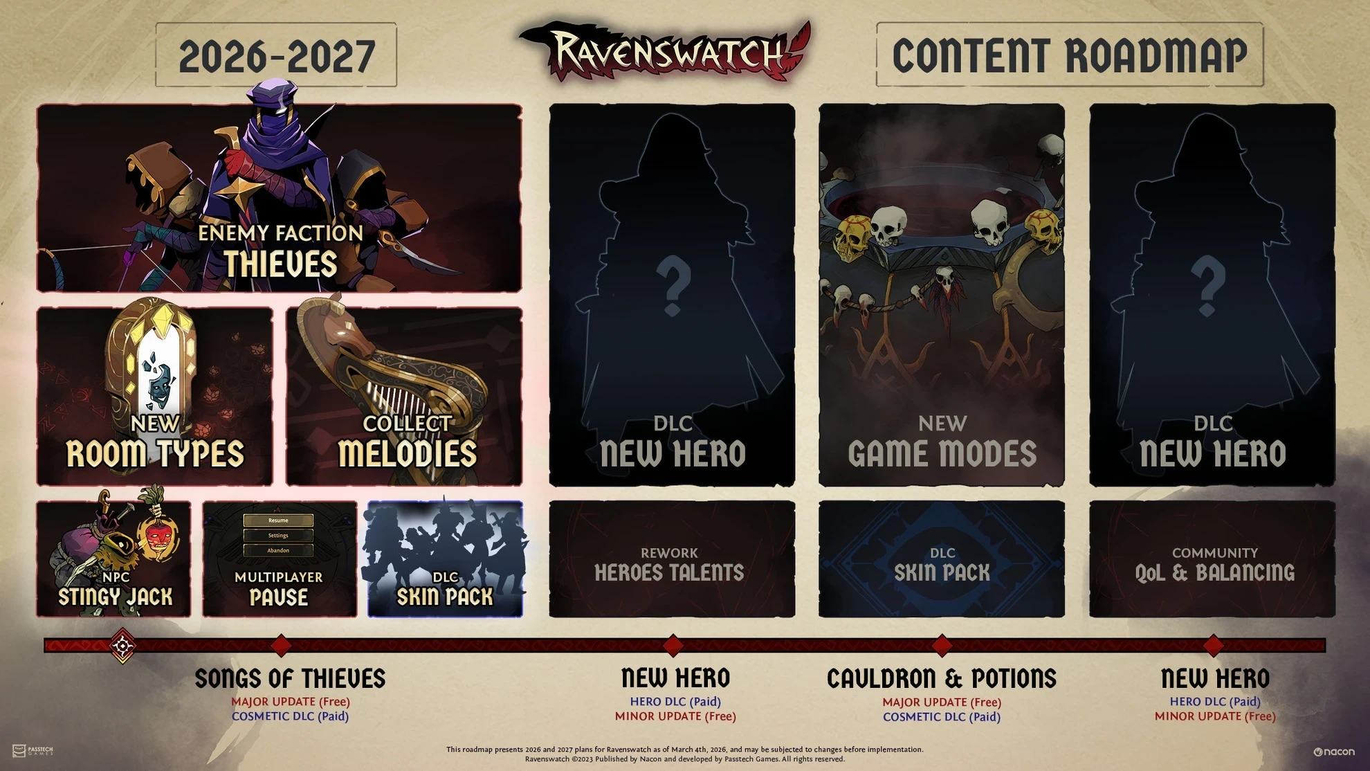 Обложка: официальный арт RavenswatchСоздатели Ravenswatch поделились дорожной картой на 2026 и 2027 годы. Среди прочего они планируют добавить новый режим и дополнительные таланты для героев. Нас ждут как минимум четыре обновления и два больших DLC с игровыми персонажами.