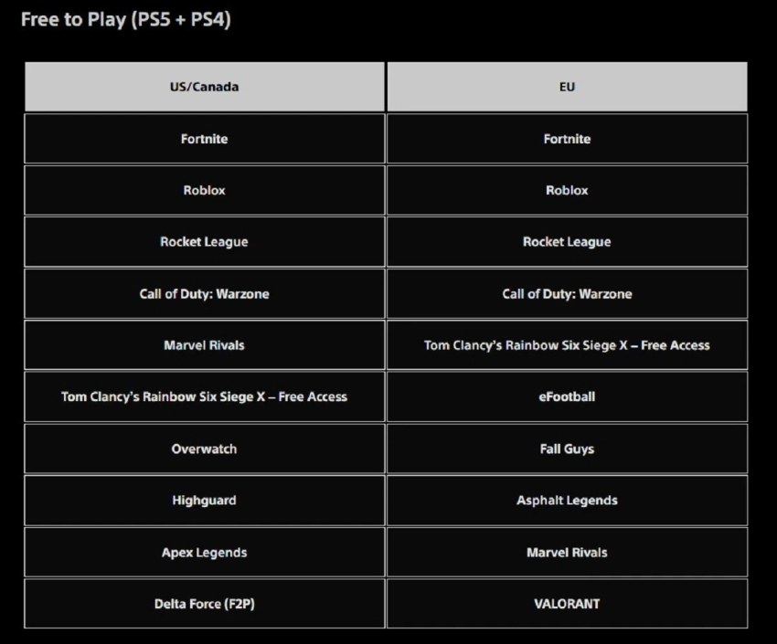 Топ загружаемых условно-бесплатных игр для PS4 и PS5 в США с Канадой и Европе за февраль 2026 года